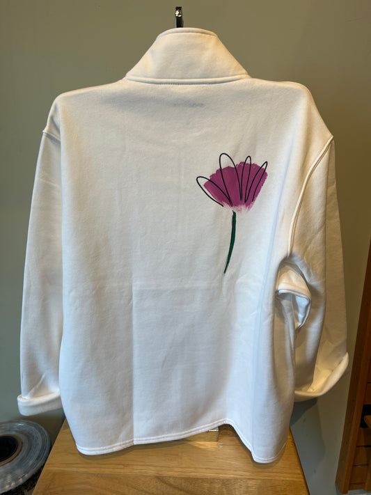 Victoria White Tulips 1/4 Zip Sweatshirt