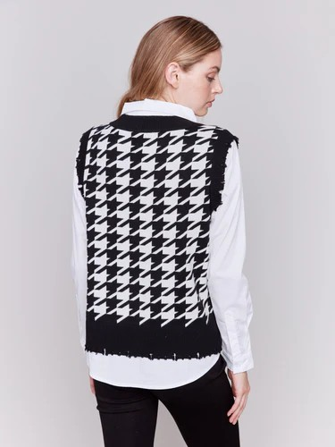 Houndstooth Stripe Cowl Neck Sweater - Ecru