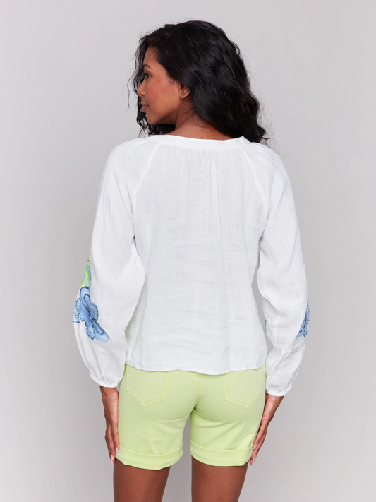 Anise Embroidered Linen-Rayon Blouse