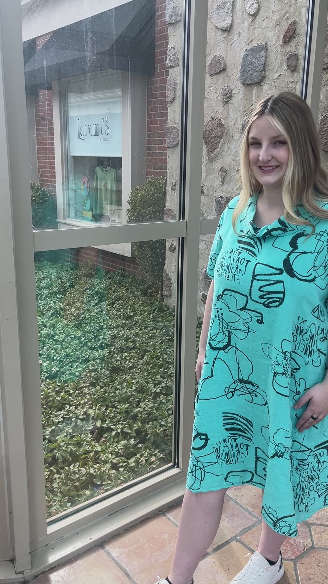Perfect for gallery openings, outdoor gatherings, or casual weekends, the Fenini Art Dress effortlessly combines comfort with artistic expression. The vibrant turquoise creates a perfect canvas for the distinctive black line art, ensuring you'll make a memorable impression wherever you go.