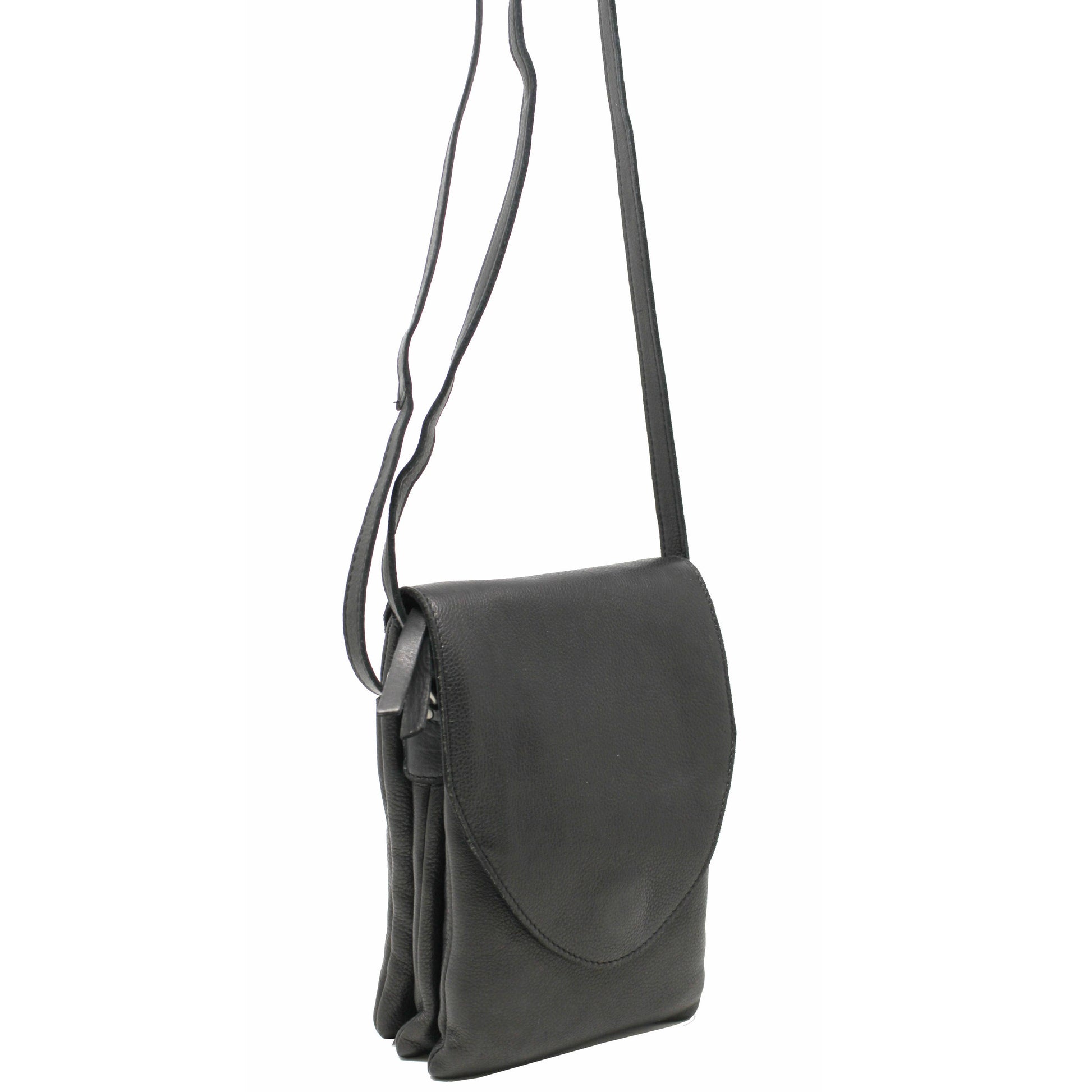 8H x 2D x 5.5L 100% leather Adjustable 1/2” wide cross body strap: 26” max: 13” min drop Top zip entry Exterior front features envelope flap w/hidden magnetic snap closure Exterior back features zip pocket w/leather pull for ease of opening and closing Interior features triple compartment: front compartment features organizer: cell phone pocket and 4 cc slots Middle compartment features open pocket Back compartment features a slit pocket.